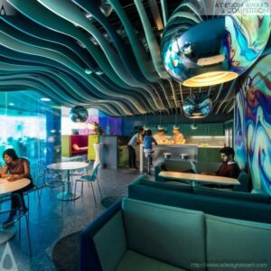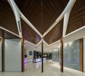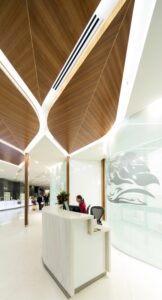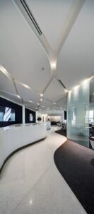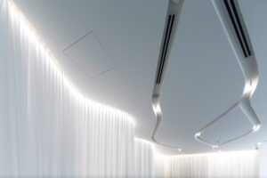 - Klimatyzacja kasetonowa – zintegrowana z sufitem podwieszanym.